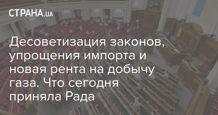 Верховная Рада в ходе сегодняшнего заседания приняла ряд законопроектов. В частности, о десоветизации законодательства, упрощении норм для перемещения сельскохозяйственной продукции, изменения в Налоговый кодекс и другие.