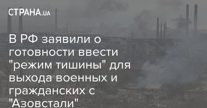 Минобороны России заявило, что готово ввести "режим тишины" для эвакуации с "Азовстали" украинских военных и гражданских. Военным нужно будет сложить оружие.