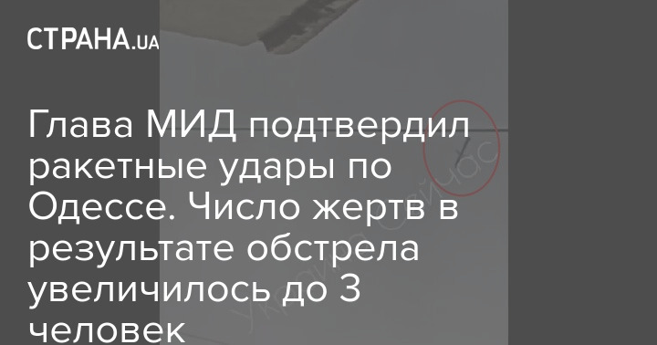 Глава Министерства иностранных дел Дмитрий Кулеба подтвердил ракетные удары по Одессе, в результате которых погибли, по новым данным, три человека.
