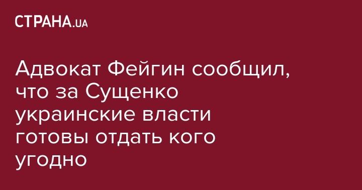 В среду, 3 октября адвокат задержанного в Москве журналиста Романа Сущенко Марк Фейгин отверг критику в "нерасторопности украинских властей" и сообщил что они "отдали бы кого угодно" в обмен на этого журналиста.