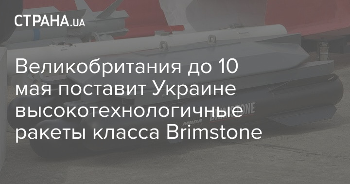 Великобритания поставит Украине высокотехнологичные ракеты класса Brimstone в ближайшие несколько недель. Возможно, поставка состоится до 10 мая.