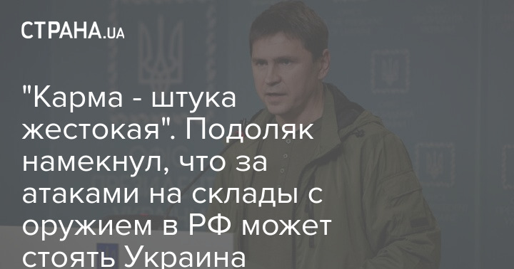 Советник главы Офиса президента Михаил Подоляк дал понять, что за последними атаками на склады с оружием в России может стоять Украина. Он объяснил "кармическими процессами" взрывы в приграничных с Украиной областях РФ.