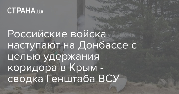 В Генеральном штабе Вооруженных сил Украины опубликовали вечернюю сводку с фронта боевых действий по состоянию на 18:00 27 апреля, в которой говорится, что российские войска продолжают наступательные действия в Восточной операционной зоне с целью установления полного контроля над территориями Донецкой и Луганской областей и удержания сухопутного коридора с оккупированным Крымом.