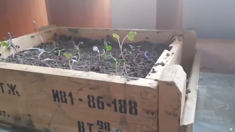 Украинский пограничник в ящиках из-под боеприпасов вырастил рассаду редиса и укропа. Видео