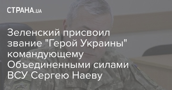 Президент Владимир Зеленский присвоил звание "Герой Украины" генерал-лейтенанту, командующему Объединенными силами Вооруженных сил Украины Сергею Наеву.