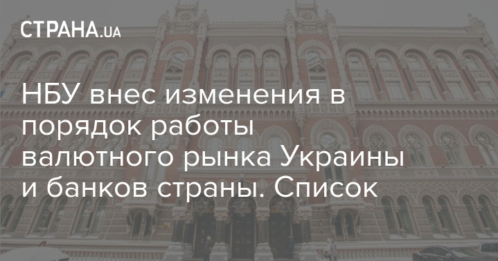 Национальный банк Украины (НБУ) принял ряд изменений в порядок функционирования валютного рынка, направленных на поддержание его стабильности, снижение давления на международные резервы Украины и предотвращение непроизводительного оттока капитала.