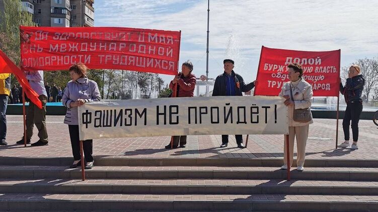 Так, митинг организовали в Мелитополе, в сети публикуют фото и видео мероприятия. У людей с собой - советские флаги и красные транспаранты.