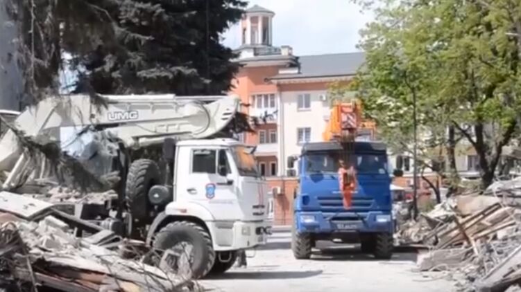 В Мариуполе россияне и "ДНР" расчищают завалы в центре города к параду на 9 мая. Видео