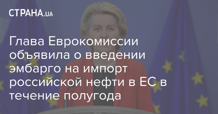Глава Еврокомиссии объявила о введении эмбарго на импорт российской нефти в ЕС в течение полугода