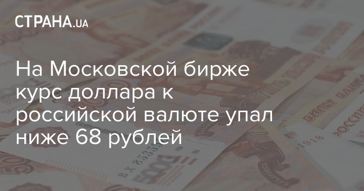 На Московской бирже курс доллара к российской валюте упал ниже 68 рублей