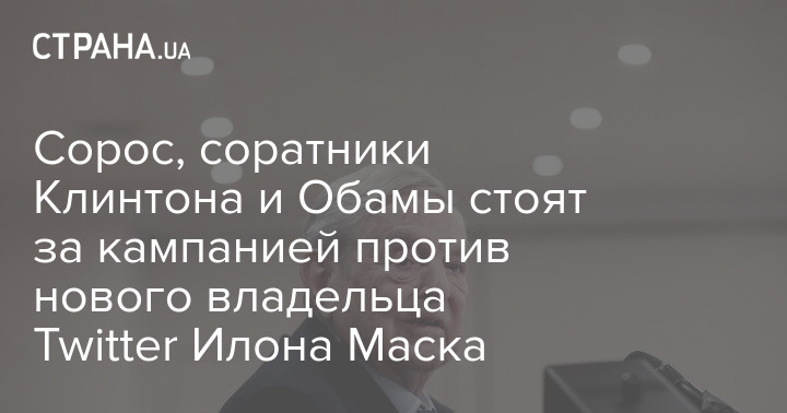 Бизнесмен Джордж Сорос, соратники Билла Клинтона и Барака Обамы, а также европейские правительства стоят за кампанией против Илона Маска, недавно купившего соцсеть Твиттер.