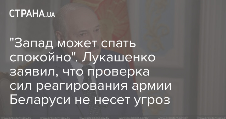 "Мы никому не угрожаем и не собираемся угрожать, и не будем делать этого. Более того, мы не можем угрожать — мы знаем, кто нам противостоит, поэтому развязать какой-либо конфликт, некую войну здесь на Западе — это абсолютно не в интересах белорусского государства... Запад может спать спокойно", - сказал Лукашенко.