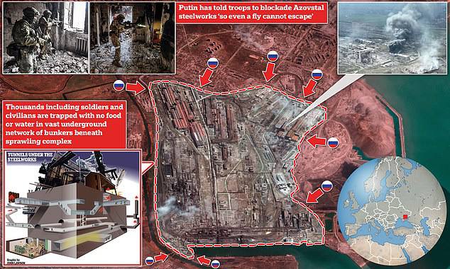 12:15 Daily Mail публикует карту штурма "Азовстали" в Мариуполе российскими военными