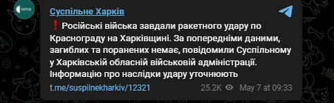 Ранее мы писали, что за минувшие сутки, 6 мая, российские оккупанты совершили три обстрела Харькова из РСЗО и артиллерии. Под огнем оказались Северная Салтовка и Индустриальный район (ХТЗ).