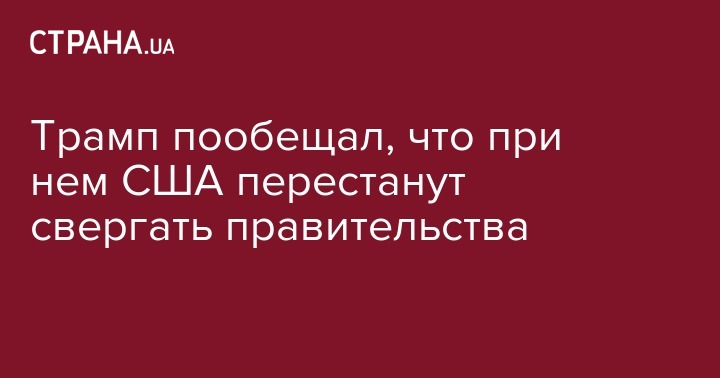 "Мы будем применять военную силу только в тех случаях, когда это жизненно необходимо для национальной безопасности США. Мы прекратим попытки заниматься построением демократии (за пределами США) и свергать режимы, а также вовлекаться в ситуации, в которые мы не имеем никакого права вмешиваться", - сказал Трамп во время митинга.