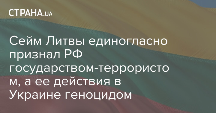 Сейм Литвы признал Россию государством-террористом. За соответствующую резолюцию законодательный орган проголосовал единогласно - 138 голосами. В документе говорится, что российские вооруженные силы и наемники совершили массовые военные преступления на территории Украины, особенно в городах Буча, Ирпень, Мариуполь, Бородянка и Гостомель.