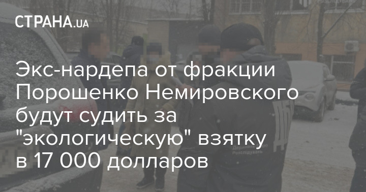 Следствие установило, что экс-депутат Андрей Немировский (имя в заметке не называется, но он уже фигурировал в этом деле - Ред.) как внештатный советник председателя Госэкоинспекции пообещал представителю аграрного предприятия помощь в получении положительного заключения оценки влияния на природу Министерства защиты окружающей среды и природных ресурсов Украины. За свои услуги он запросил 17 тысяч долларов США. Во время первой передачи денег бывший народный депутат получил 2 тысячи долларов.