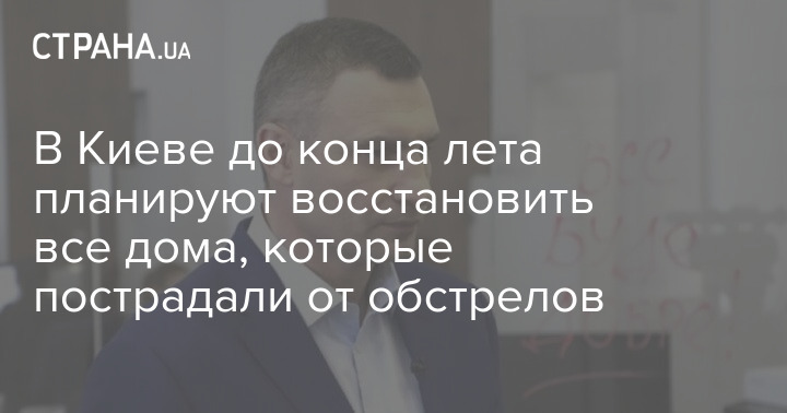 В Киеве до конца лета планируют восстановить все дома, которые пострадали от обстрелов. Это 390 зданий, в том числе 222 многоквартирных дома. Об этом заявил мэр Киева Виталий Кличко в эфире телемарафона.