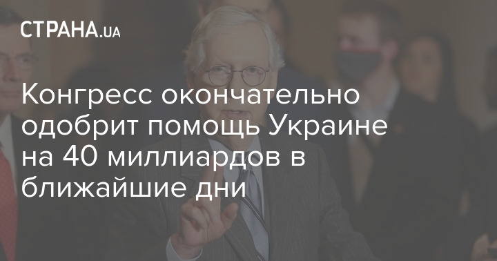 Окончательное одобрение Конгрессом законопроекта о помощи Украине в размере 40 миллиардов долларов состоится в течение нескольких дней, поскольку высокопоставленные республиканцы в Сенате США заявили в среду, что ожидают решительной поддержки со стороны своей партии меры, уже принятой Палатой представителей.