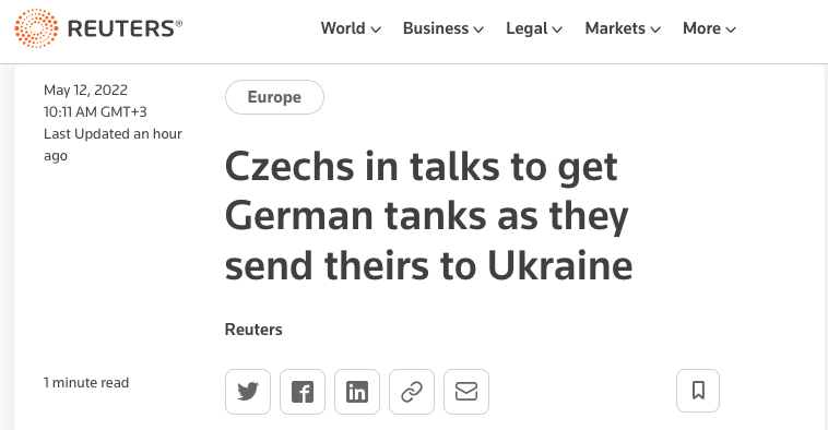 Сообщается, что у Чехии есть 30 модернизированных танков T-72M4CZ, закрепленных за танковой частью, и еще несколько десятков на хранении, не прошедших модернизацию. Технику потенциально сможет получить Киев, если Чехия получит танки из Германии.