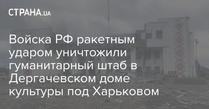 Российские войска нанесли ракетный удар по городу Дергачи под Харьковом. В результате уничтожен местный дом культуры, в котором был гуманитарный штаб.