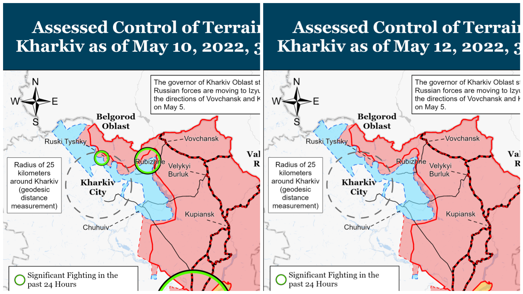 Сравнение военной ситуации под Харьковом за 10 и 12 мая