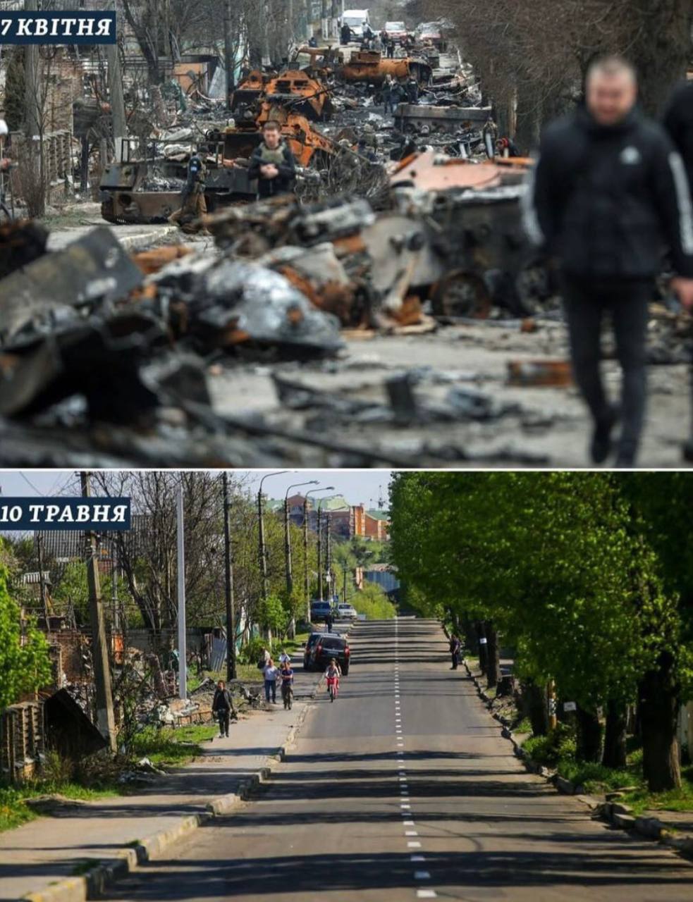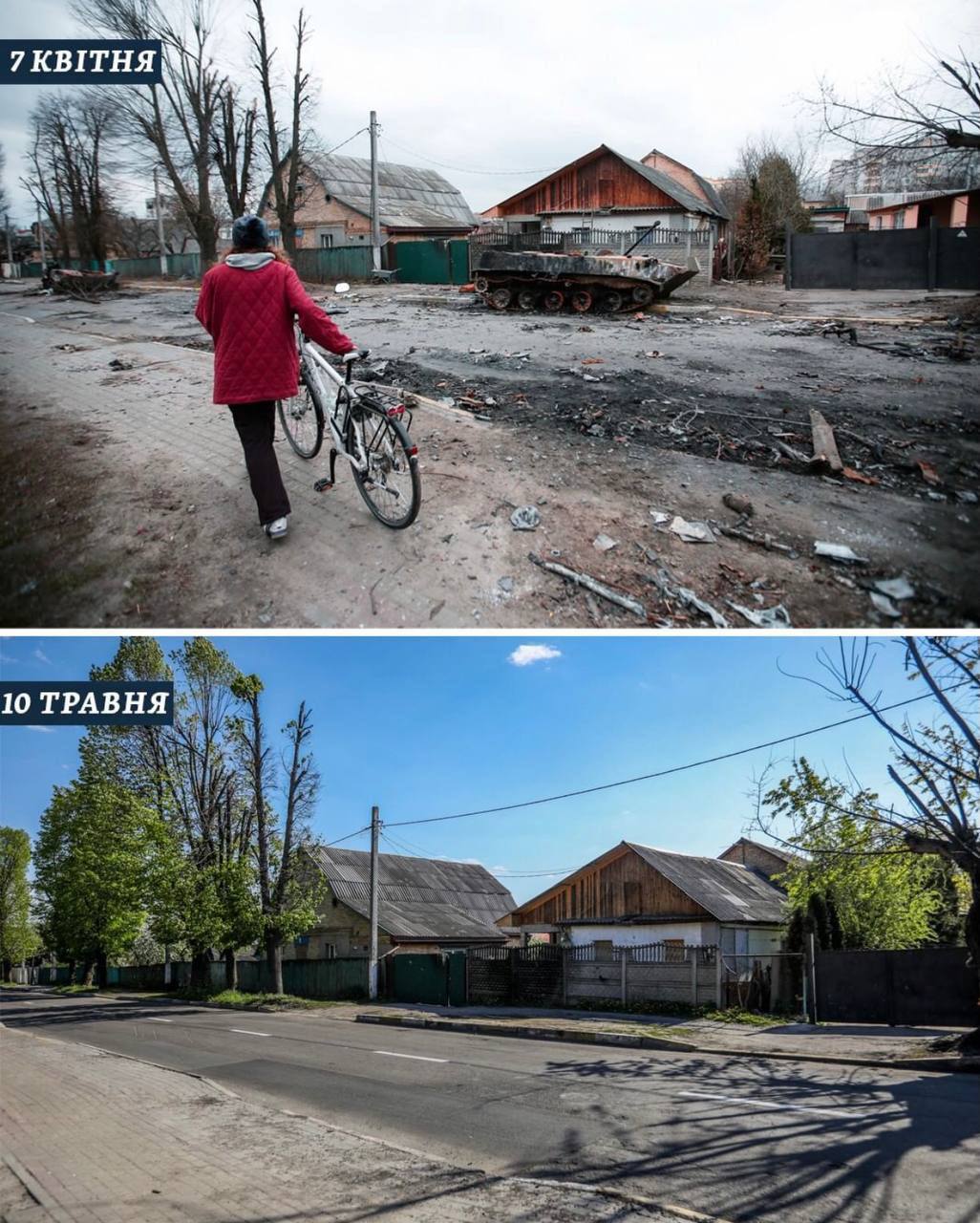 18.11 Фотографии Бучи - сразу после освобождения и сейчас. Многие улицы города преобразились.