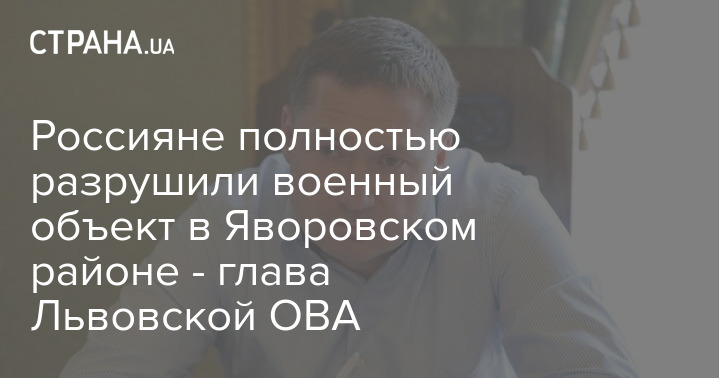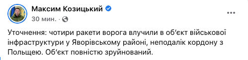 Львовский губернатор сообщил о полном разрушении военного объекта. Фото: facebook/kozytskyy.maksym.official