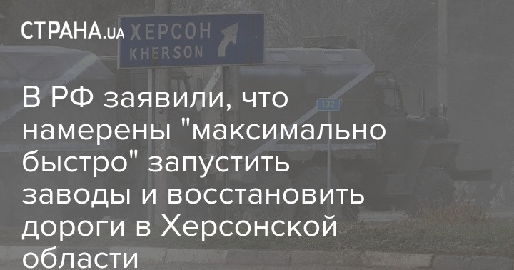 В РФ заявили, что намерены "максимально быстро" запустить заводы и восстановить дороги в Херсонской области