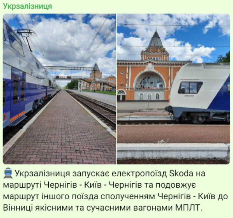 Компания "Укрзализныця" запускает электропоезд Skoda по маршруту Чернигов – Киев – Чернигов и продлевает маршрут поезда сообщением Чернигов – Киев до Винницы.