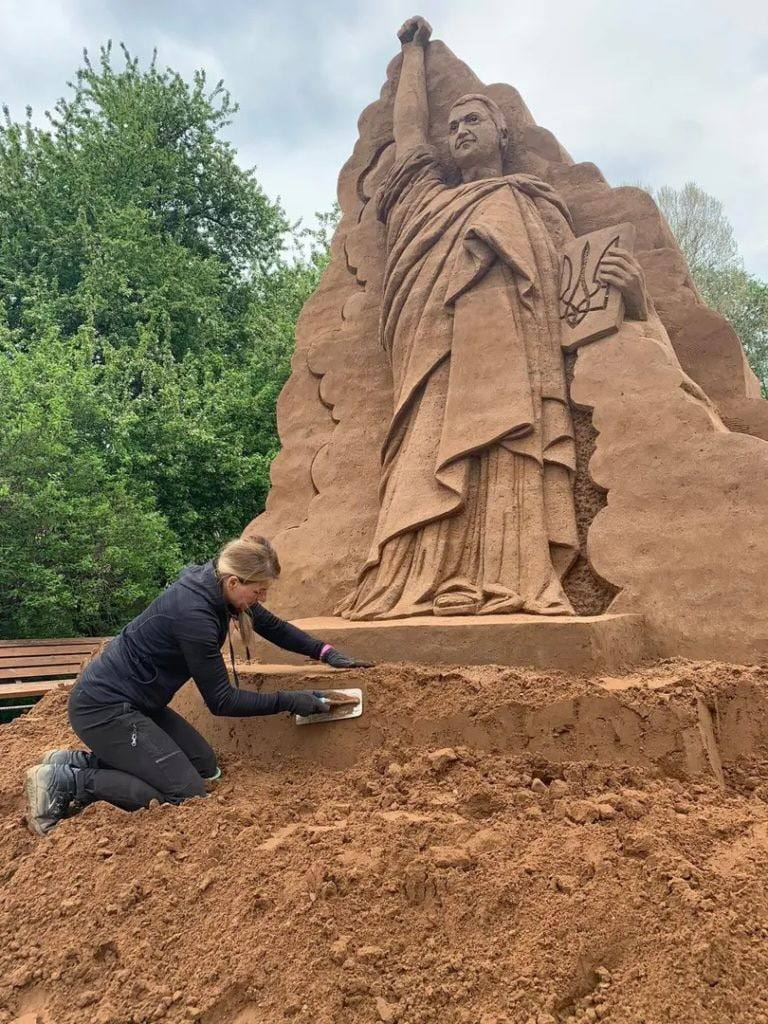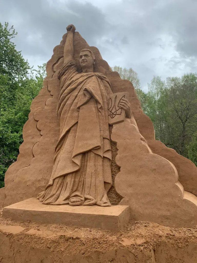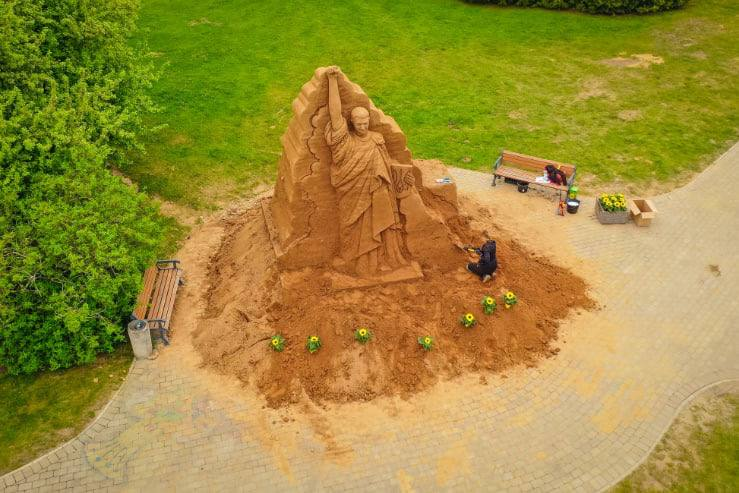 На строительство статуи Зеленского на новой центральной площади Тырва ушло 72 тонны песка. Торжественное открытие запланировано на 21 июня.