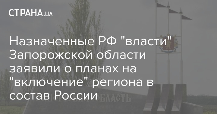 Назначенные РФ "власти" Запорожской области заявили о планах на "включение" региона в состав России