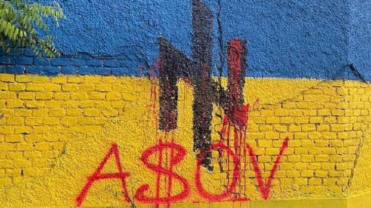 Около памятника советским солдатам в Вене появилась символика "Азова" на фоне цветов украинского флага. Кто и зачем ее там нарисовал - неизвестно.