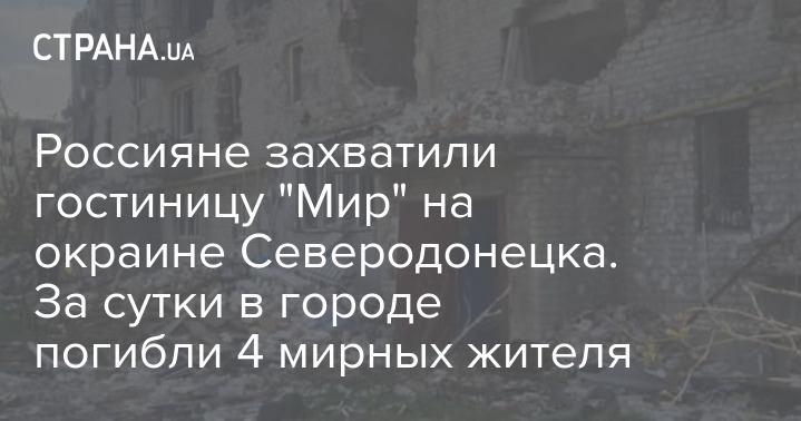 Россияне захватили гостиницу "Мир" на окраине Северодонецка. За сутки в городе погибли 4 мирных жителя