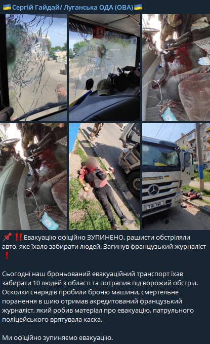 6. "Сегодня в Луганской области оккупанты сорвали эвакуацию из районов боевых действий, обстреляв машину, которая ехала за местными. От смертельного ранения в результате этого обстрела погиб французский журналист Фредерик Леклерк. Он работал на французском телеканале BFM TV. Чуть больше месяца назад я дал интервью именно этому телеканалу. Это было мое первое интервью представителям медиа Франции за время полномасштабной войны. Мои искренние соболезнования коллегам и родным Фредерика. Он стал 32-м медийщиком, погибшим после 24 февраля".