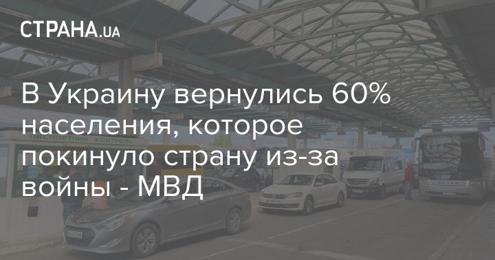 В Украину вернулись 60% населения, которое покинуло страну из-за войны - МВД