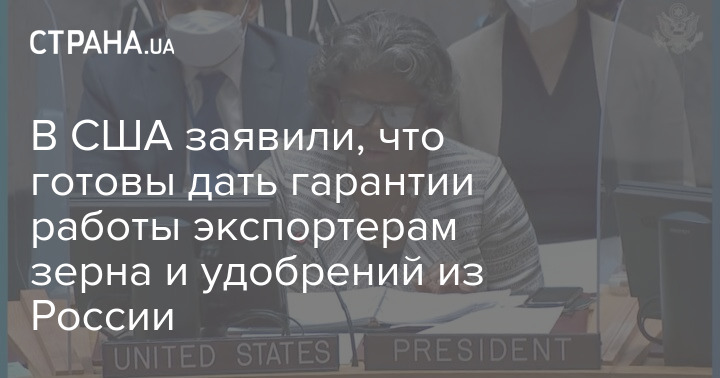 Постпред США в ООН рассказала, что США готовы сделать для стабильного экспорта удобрений из РФ. Скриншот