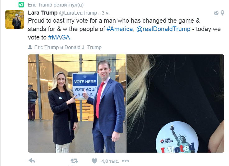 - Еще одна причина, объясняющая победу Трампа. Явка для Хилари стала ключевой проблемой последних двух недель до выборов. Они очень большие ресурсы бросили на кампанию "Go out and vote!", с тем, чтобы привести своих избирателей. Во всех своих выступлениях сама кандидат - Хилари, Барак Обама, Мишель Обама призывали приходить на участки. Частично победа Трампа обеспечена и недоверием к Клинтон, как к бюрократу, связанному с крупнейшими правящими кланами. Кроме того, Клинтон слишком сильно уверовала в свою победу, а это для нее плохо. Избиратель проигрывающего кандидата всегда более мобилизирован. Логика проста: мы придём, проголосуем, а возможно и приведем кандидата к победе, тем более, что разрыв небольшой. Для избирателя выигрывающего кандидата даже очередь на избирательный участок могла стать фактором, почему он развернулся и ушел.