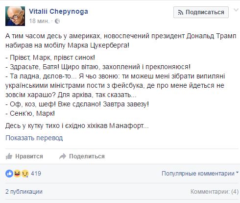 9 ноября, 15.31 Нардепы начали троллить чиновников за скрытые посты о Трампе