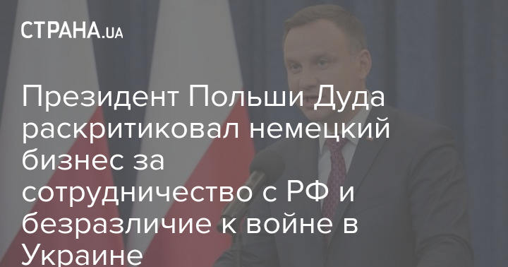 Президент Польши Дуда раскритиковал немецкий бизнес за сотрудничество с РФ и безразличие к войне в Украине