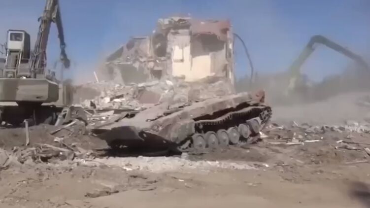 В захваченном Мариуполе россияне разбирают завалы и сносят разрушенные дома. Фото: Скриншот из видео