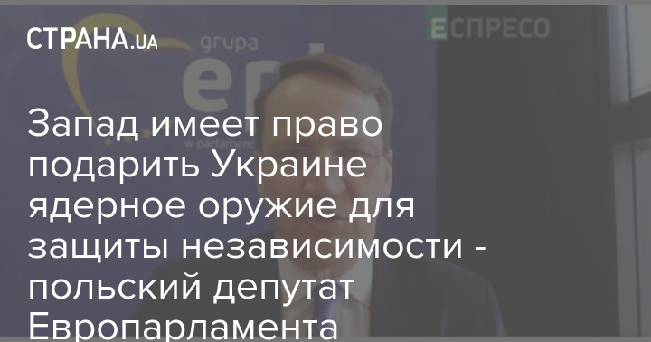 Запад имеет право подарить Украине ядерное оружие для защиты независимости - польский депутат Европарламента