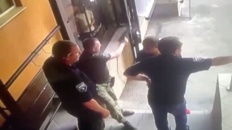 На видео с камер наблюдения видно, как возле входа в ЖК сотрудник Генштаба что-то эмоционально рассказывает двум охранникам и одному мужчине, а потом нервно достает оружие и направляет его на ноги собеседнику. Тот спокойно отводит руку с пистолетом от своей ноги, а через несколько секунд неуверенно стоящий на ногах сотрудник Генштаба стреляет в сторону, даже особо не посмотрев, куда он открывает огонь.