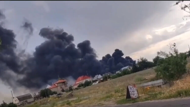 Жители оккупированной Новой Каховки в Херсонской области делятся в социальных сетях видео, как горит склад с боеприпасами.