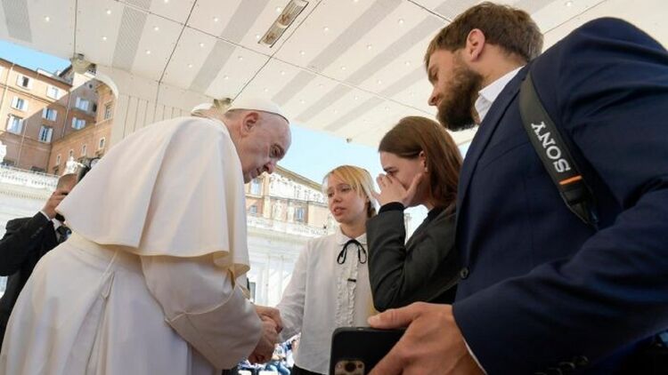 Понтифик на встрече с женами военных батальона "Азов". Архивное фото Vatican News