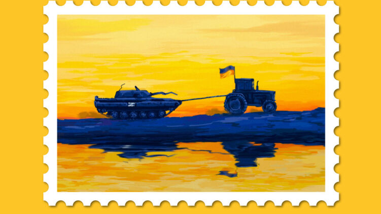 Трактор, который тянет танк. Украинцы выбрали дизайн третьей военной марки от "Укрпочты". Фото