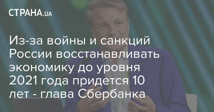 Из-за войны и санкций России восстанавливать экономику до уровня 2021 года придется 10 лет - глава Сбербанка