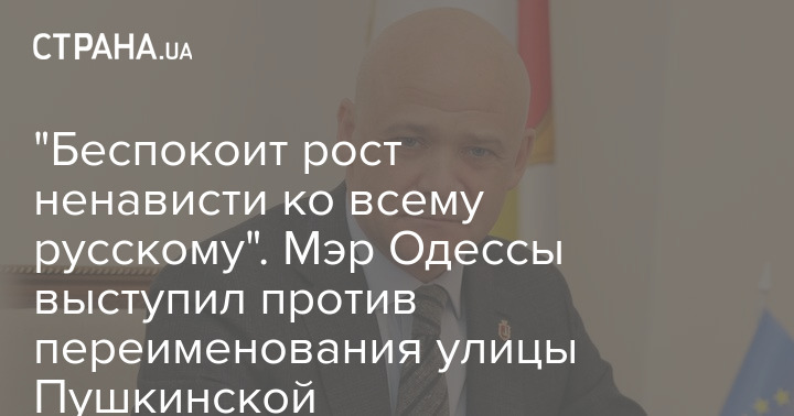 "Беспокоит рост ненависти ко всему русскому". Мэр Одессы выступил против переименования улицы Пушкинской