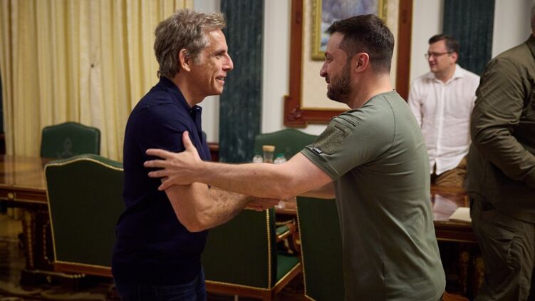 Владимир Зеленский встретился с американским актером Беном Стиллером в Офисе президента в Киеве.