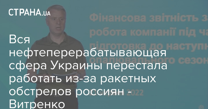 Вся нефтеперерабатывающая сфера Украины перестала работать из-за ракетных обстрелов россиян - Витренко